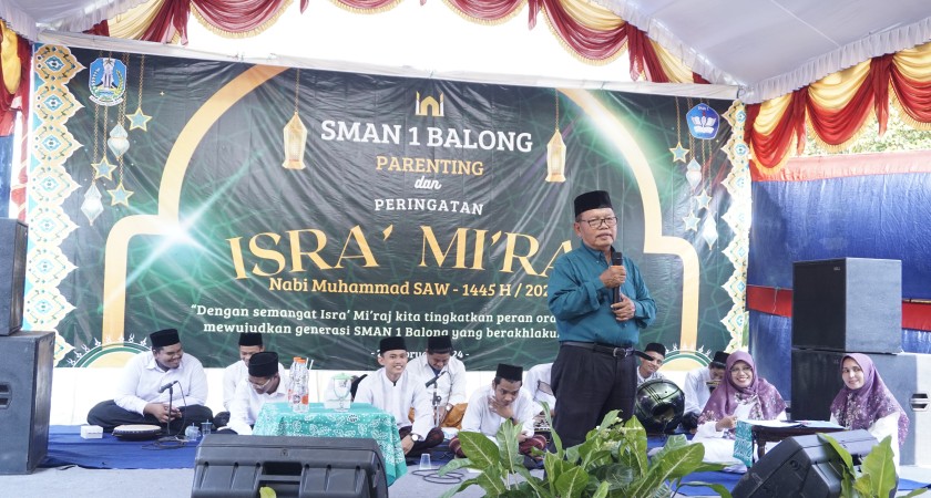Acara peringatan Isra Mi’raj 1445 H. Kegiatan mulai pada pukul 07.00 WIB. Acara dimulai dengan menyanyikan lagu Religi dari grub Hadroh SMAN 1 Balong. Lanjut dengan menampilkan bakat geguritan dari salah satu siswi. Selanjutnya pembacaan ayat suci Al qur’an. adalah mukzizat terbesar yang selalu terjaga keutuhannya sepanjang zaman, yang tentunya harus kita Imani dan kita amalkan. Siapa pun yang membaca dan mendengarkannya, mendapatkan banyak keberkahan.