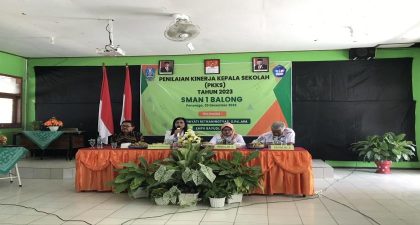 Pada Rabu, 20 September 2023 Kepala Sekolah SMA Negeri 1 Balong sudah melaksanakan Penilaian Kinerja Kepala Sekolah (PKKS) oleh pengawas, dengan menggali informasi dari pihak-pihak guru dan tenaga kependidikan melalui standar penilaian kepala sekolah. Dalam kegiatan tersebut ikut berpartisipasi yaitu managemen sekolah dan guru sebagai koordinator lab serta perpustakaan.